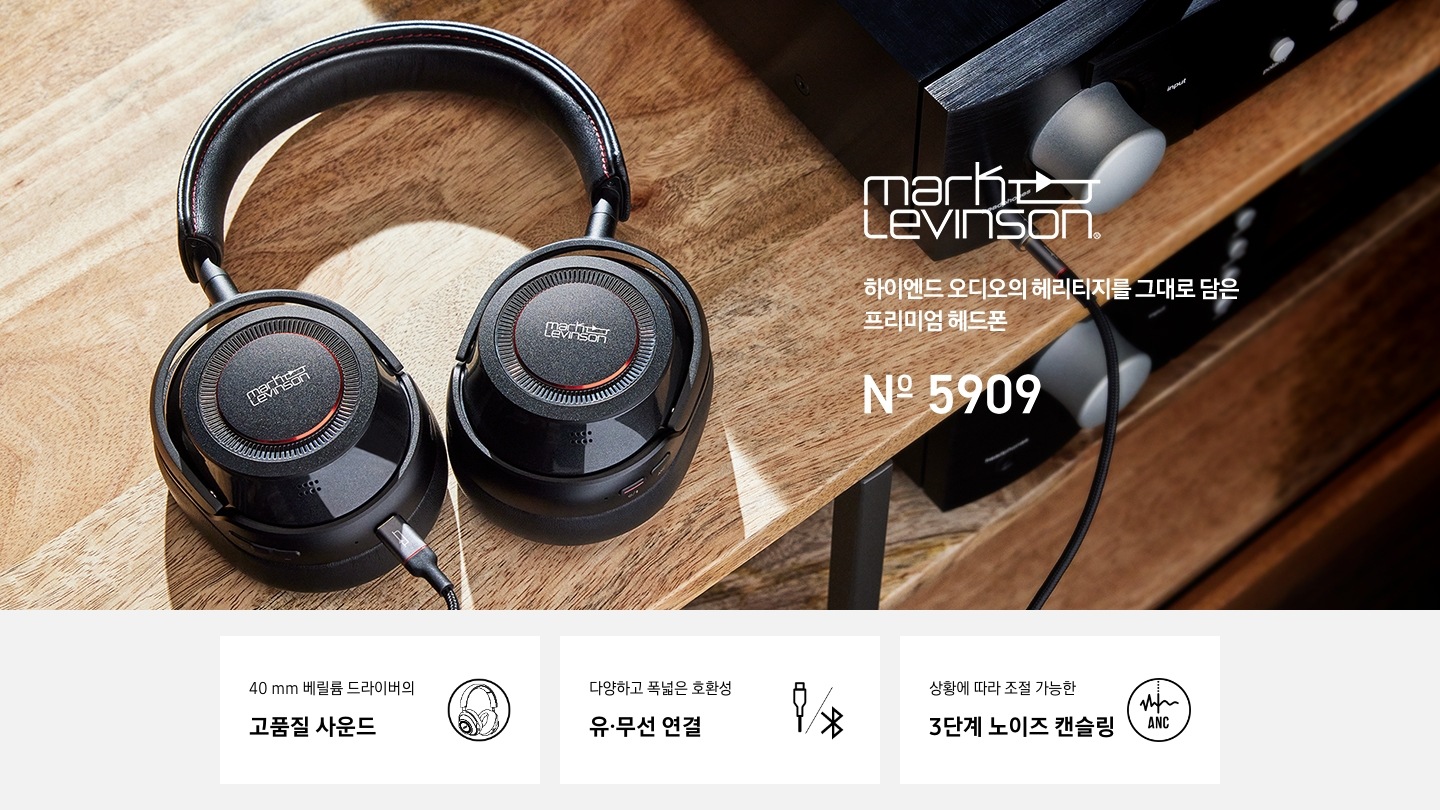 №5909 헤드폰과 함께 마크레빈슨의 50년 헤리티지와 첨단 사운드 테크놀로지를 직접 경험해 보세요.