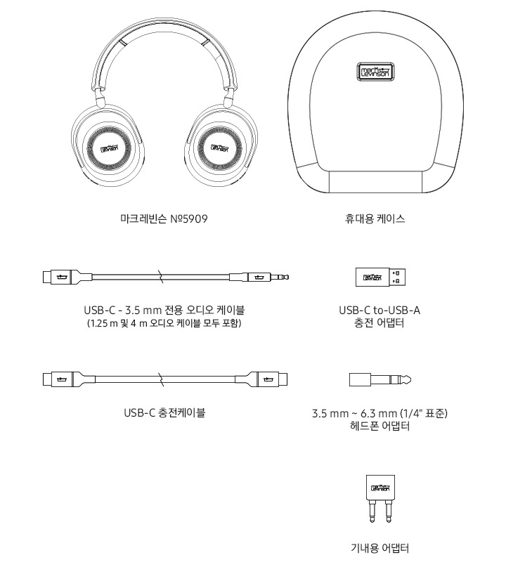 마크레빈슨의 로고가 새겨진 에칭 커버와 유광의 메탈릭 페인팅 이어컵, 세련된 알루미늄 프레임이 고급스러움을 더합니다.