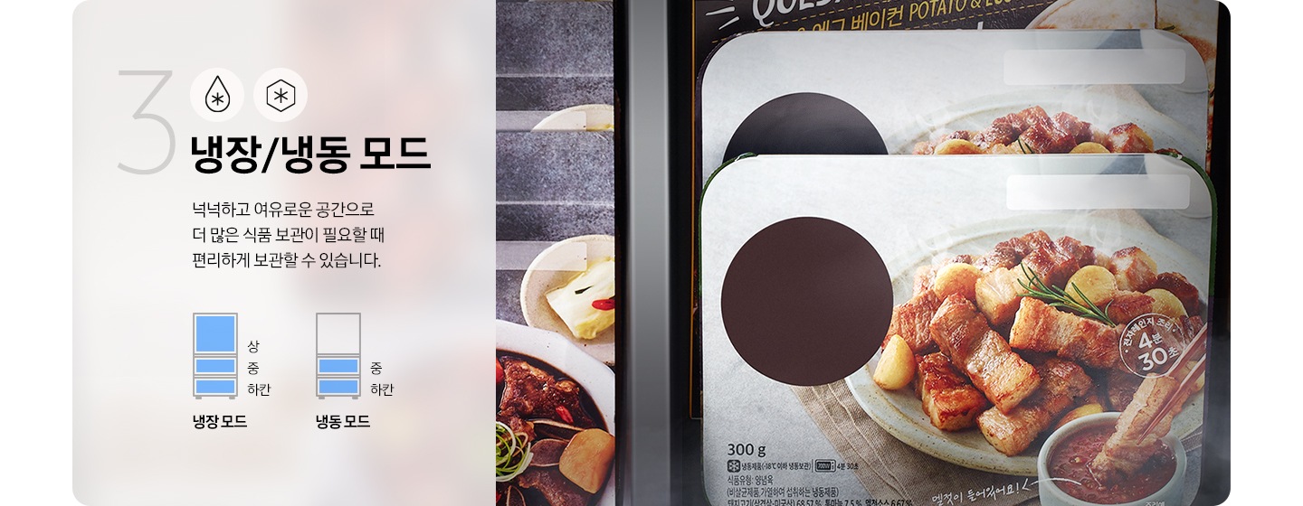 상중하칸에 새롭게 적용된 프레쉬 필터가 음식 신선도를 오랫동안 유지해주고 음식에서 나는 냄새 걱정까지 덜어줍니다.