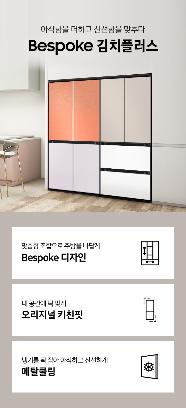 * 해당 이미지는 BESPOKE 키친핏 냉장고 4도어와 김치플러스 키친핏 4도어를 조합한 이미지이며,