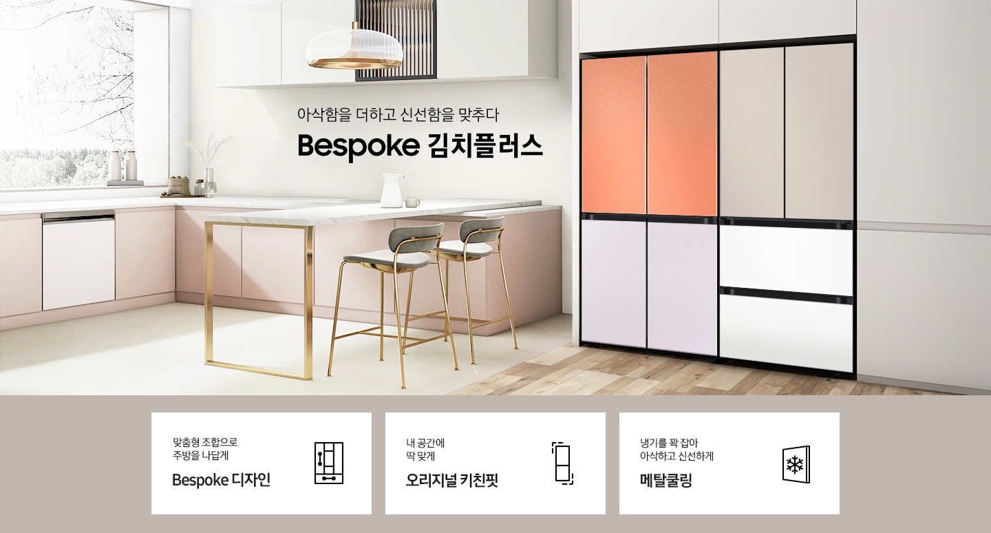 * 1,035 L는 BESPOKE 냉장고 키친핏 4도어 RF60B91C3AP 김치플러스 키친핏 4도어 RQ42A94B1AP 페어 설치 시 용량입니다.