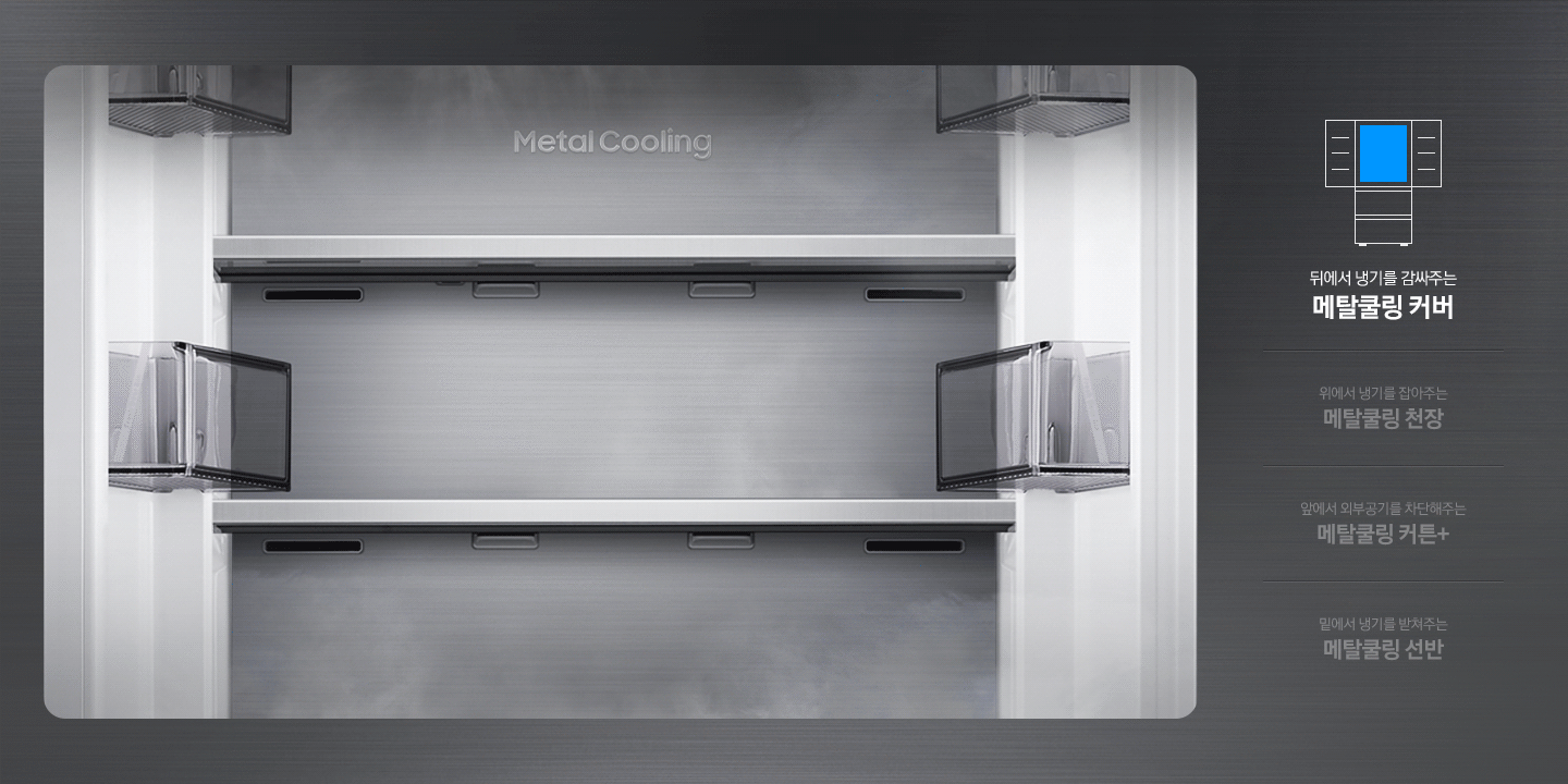 냉기 보존에 탁월한 메탈쿨링으로 잦은 문열림에도 냉기를 보존해주어