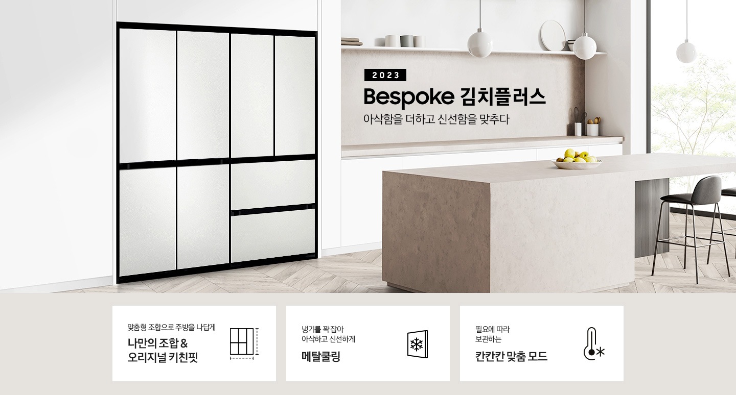 * 1,035 L는 Bespoke 냉장고 키친핏 4도어 RF60C9011AP, 김치플러스 키친핏 4도어 RQ42C94B2AP 페어 설치 시 용량입니다.