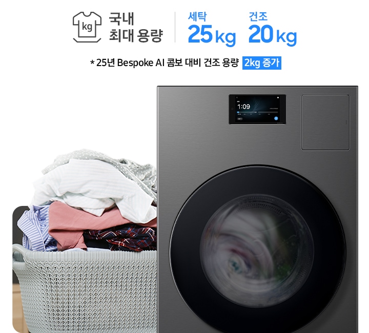 * 국내 최대 세탁 용량 : 2026년 3월 1일 기준, 한국에너지공단에 신고된 가정용 세탁건조기 기준