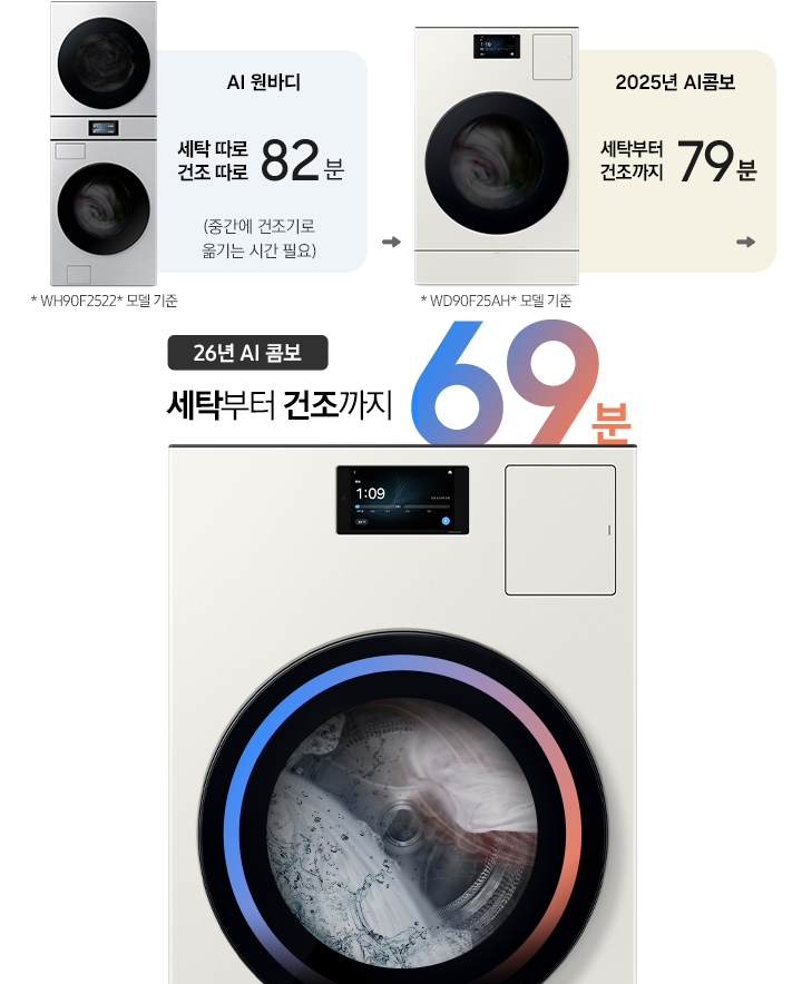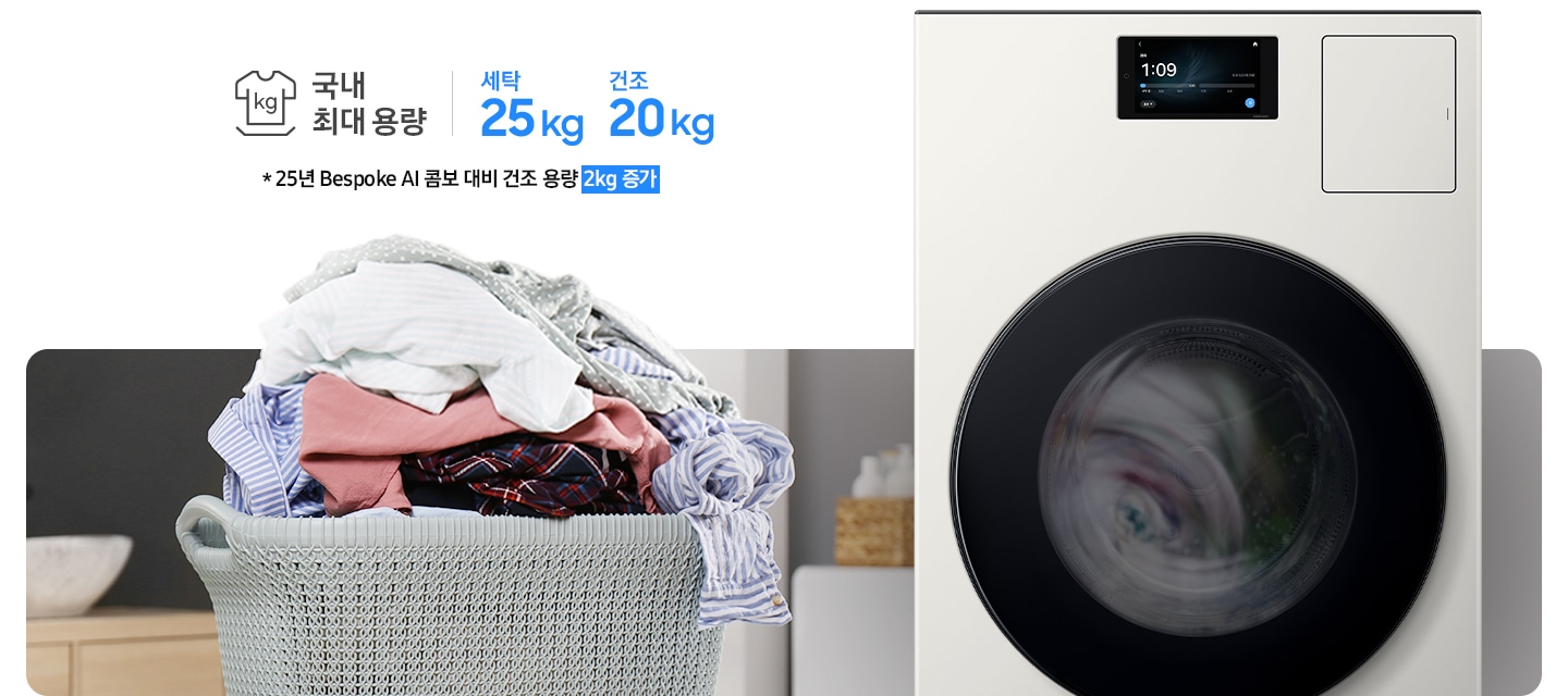 * 국내 최대 세탁 용량 : 2026년 3월 1일 기준, 한국에너지공단에 신고된 가정용 세탁건조기 기준