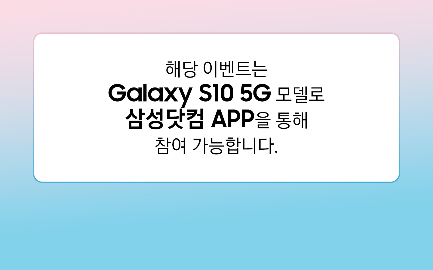해당 이벤트는 Galaxy S10 5G 모델로 삼성닷컴 APP을 통해 참여 가능합니다.