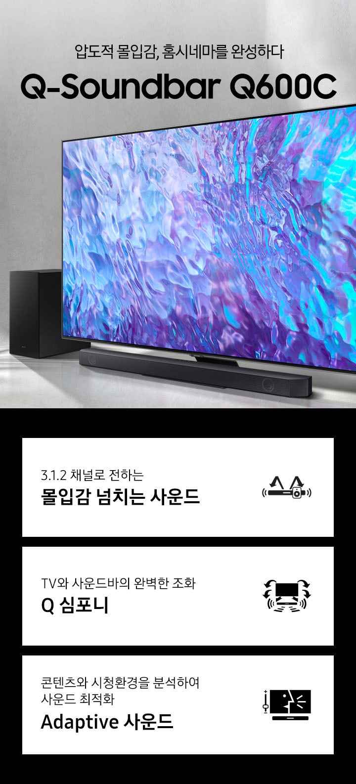 삼성 사운드바와 연결해, 한차원 높은 입체적 사운드를 경험해보세요.