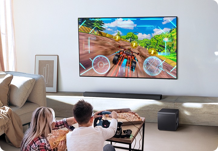 TV 스피커와 사운드바의 완벽한 시너지를 만들어 냅니다.
