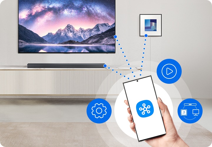 * 무선 네트워크(Wi-Fi)로 모바일 기기와 사운드바를 연결하려면 스마트싱스 앱이 필요합니다.