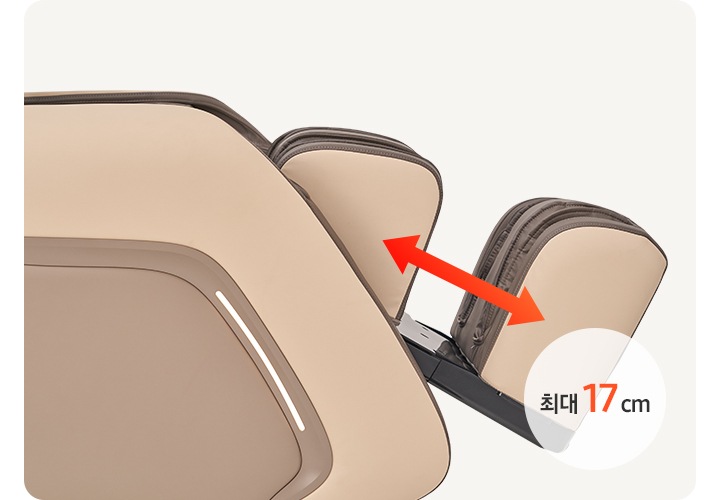 앉은 채로 발 부분을 밀어 최대 17cm까지 연장 가능하고