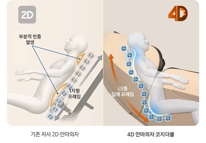 머리부터 엉덩이까지 마사지되는 LS형 입체 프레임을 적용하였습니다.
