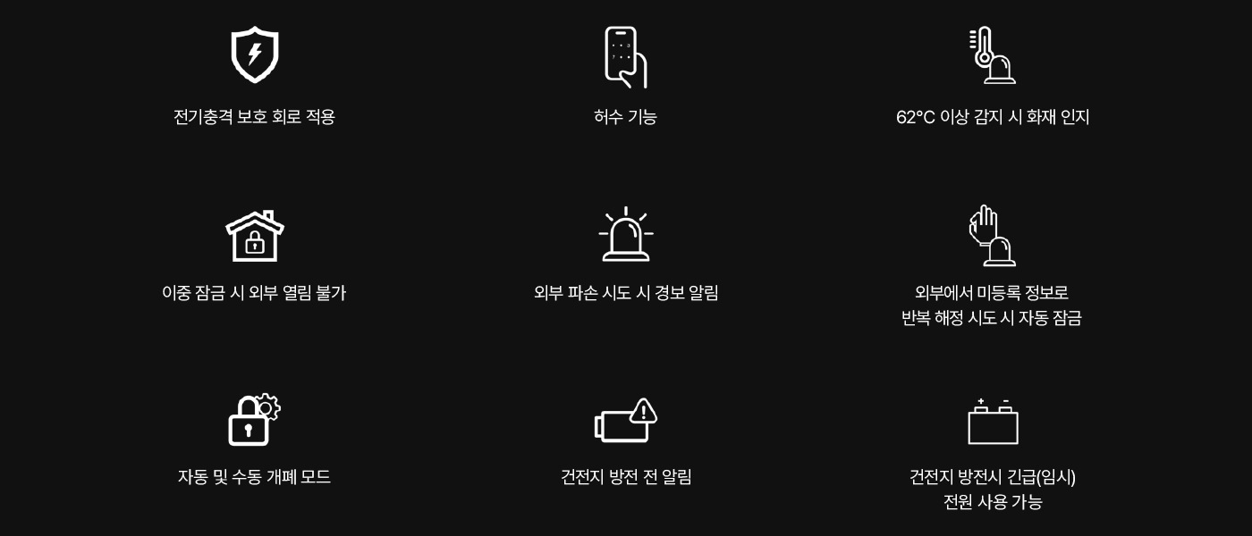 Outer Panel(실외) -30°C~55°C / Inner Panel(실내) -10°C~55°C