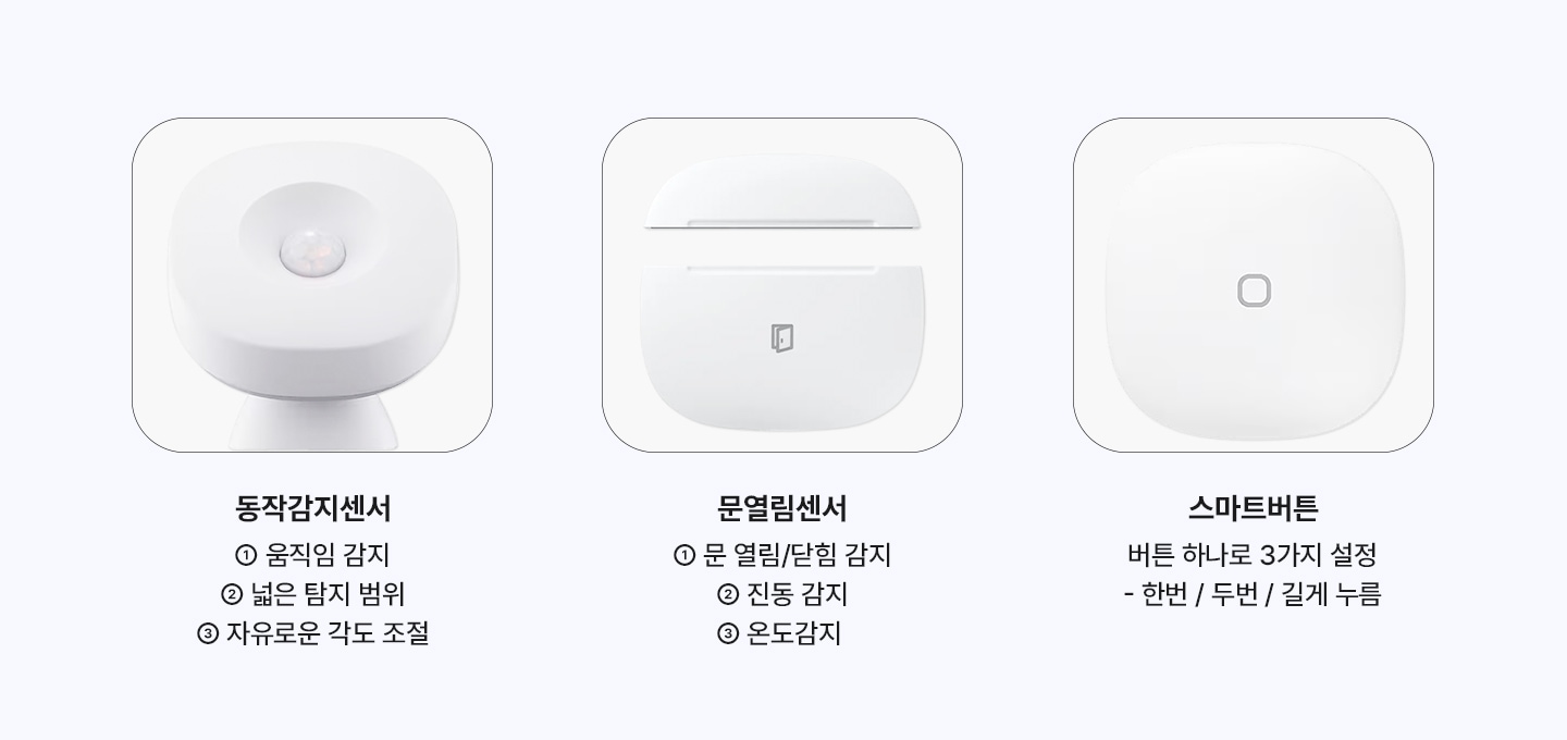 동작감지센서, 문열림센서, 스마트버튼, 스마트커튼 등의 디바이스들을