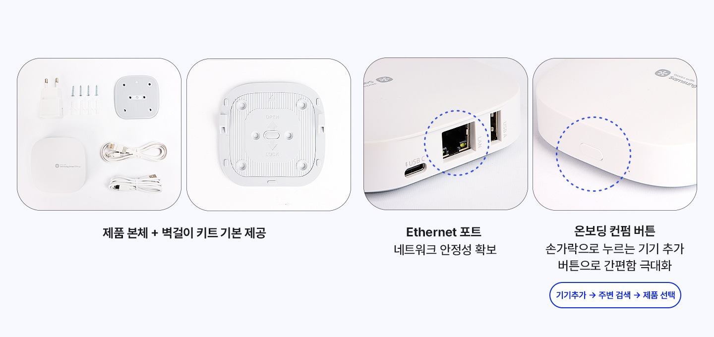 벽걸이 브라켓부터 유선Ethenet포트, 온보딩버튼까지 사용성을 높였습니다.
