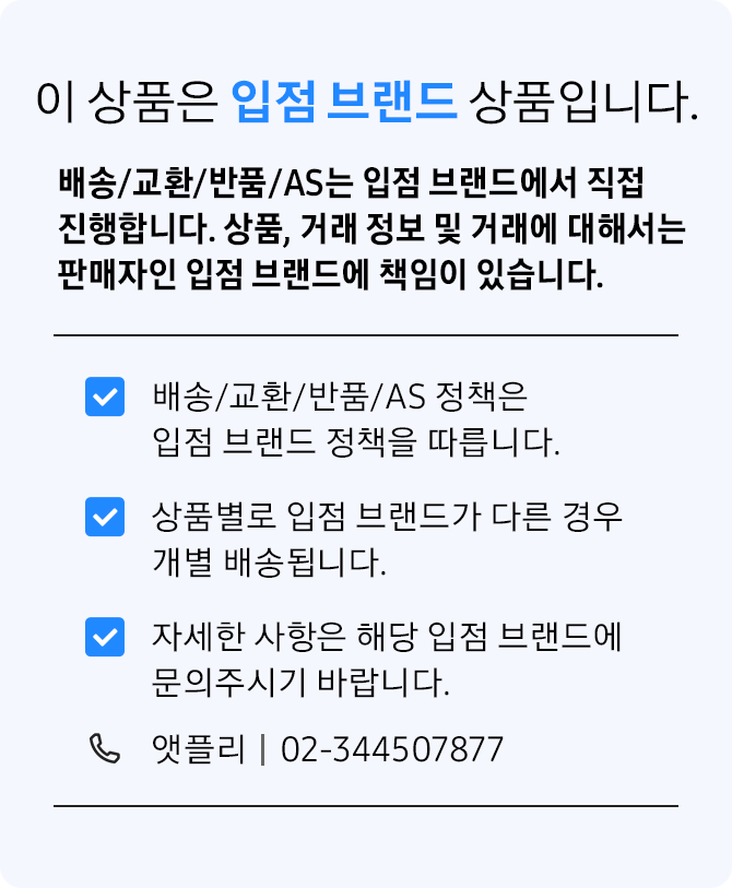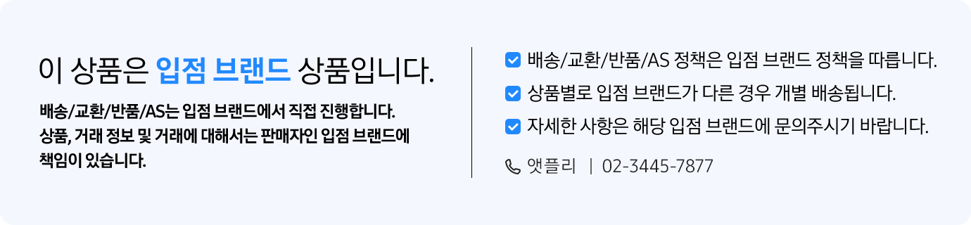 * 본 상품의 판매자는 앳플리입니다. 삼성전자는 통신판매중개업자로서 통신판매의 당사자가 아니므로, 앳플리가 등록한 상품, 거래정보 및 거래 등에 대해 책임지지 않습니다. 본 상품 사용과 관련한 문의사항은 앳플리(02-3445-7877)로 연락주시기 바랍니다.