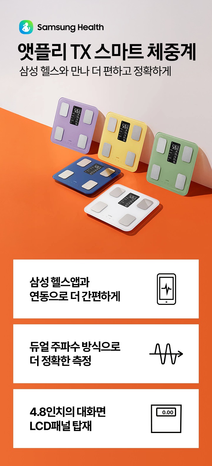* 앳플리 펌웨어 1.0.2 이상 버전이 아니면, 스마트싱스와 삼성 헬스 연동이 되지 않습니다.