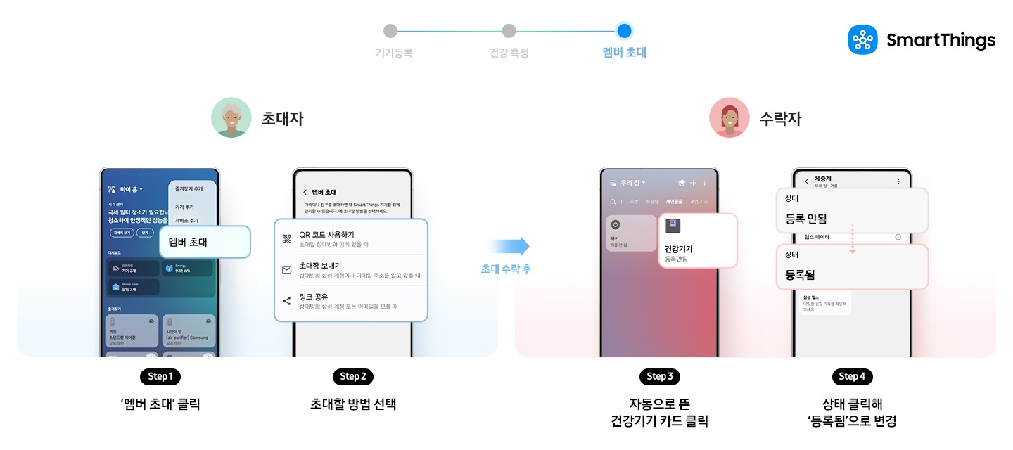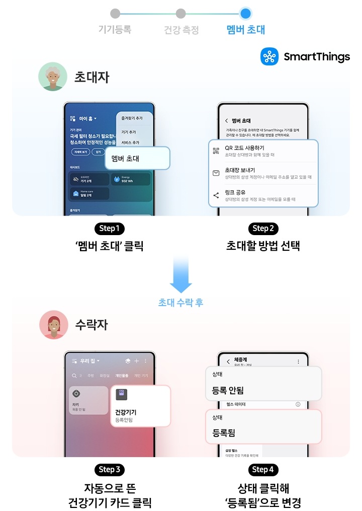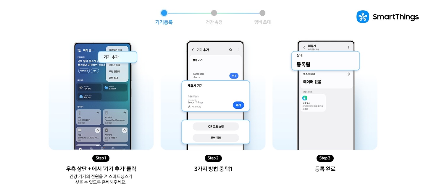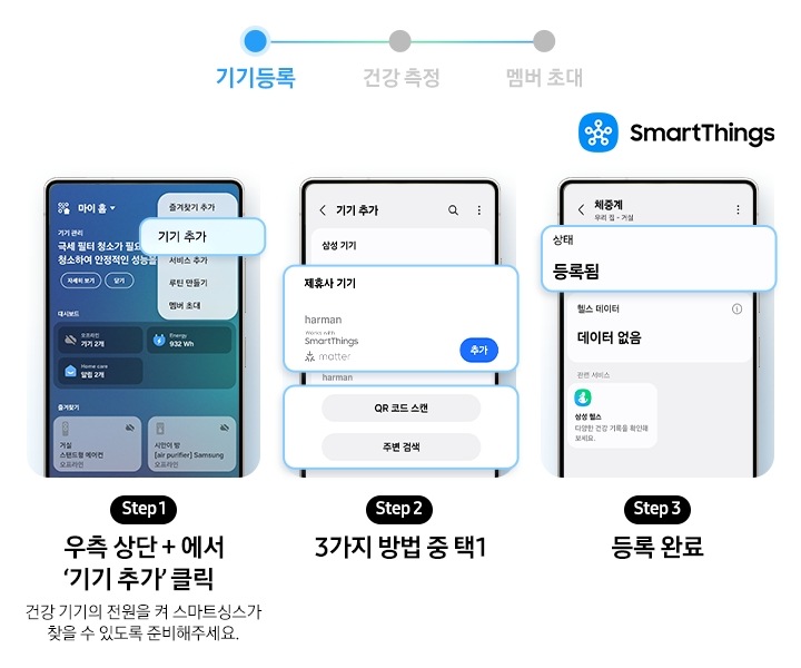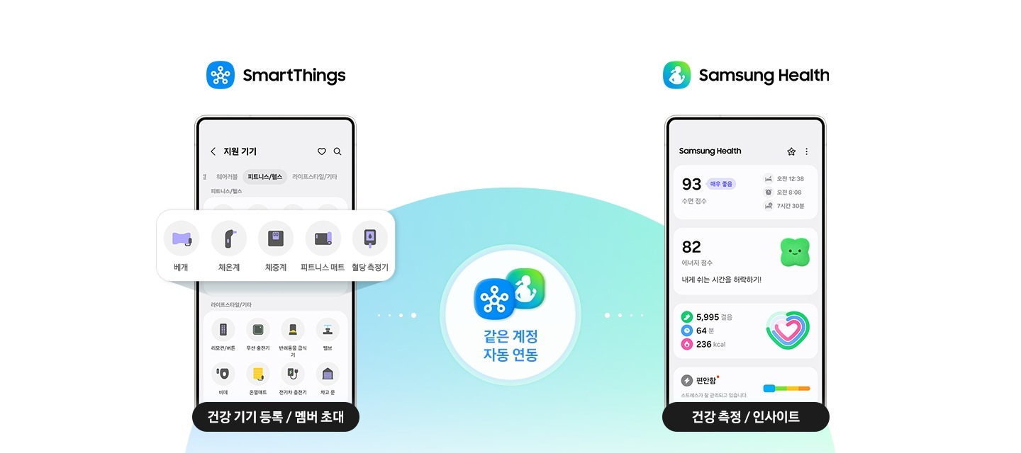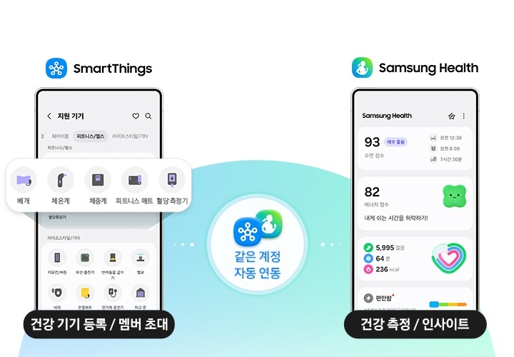 * Samsung Health 와 SmartThings 앱이 동일한 삼성 계정에 로그인되어 있어야 합니다.
