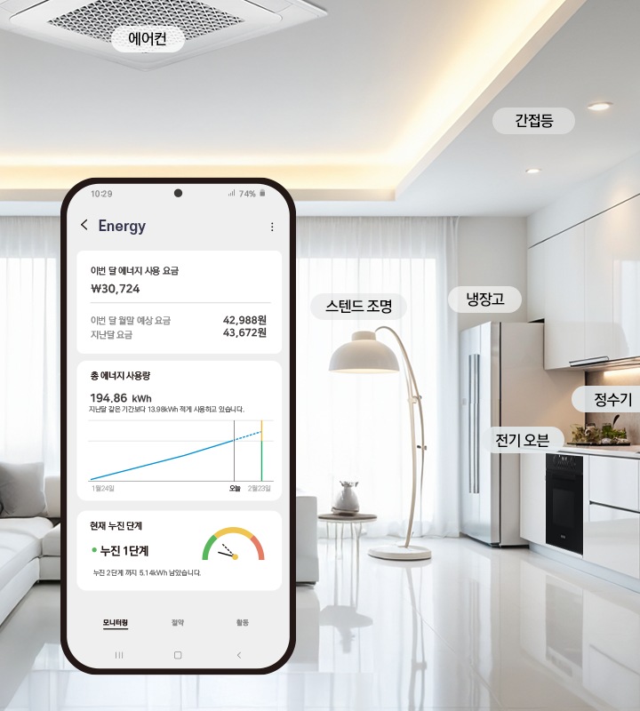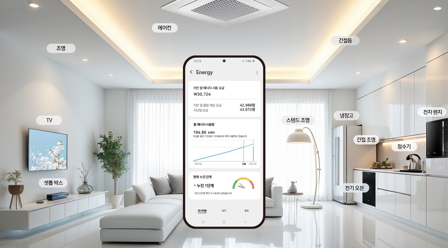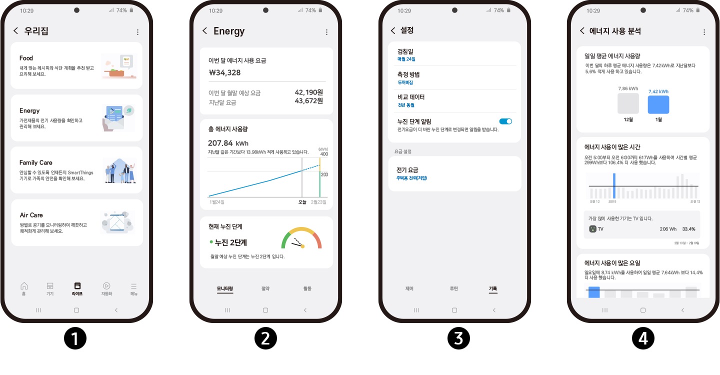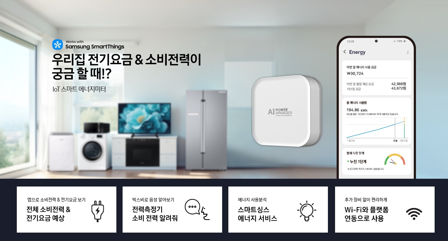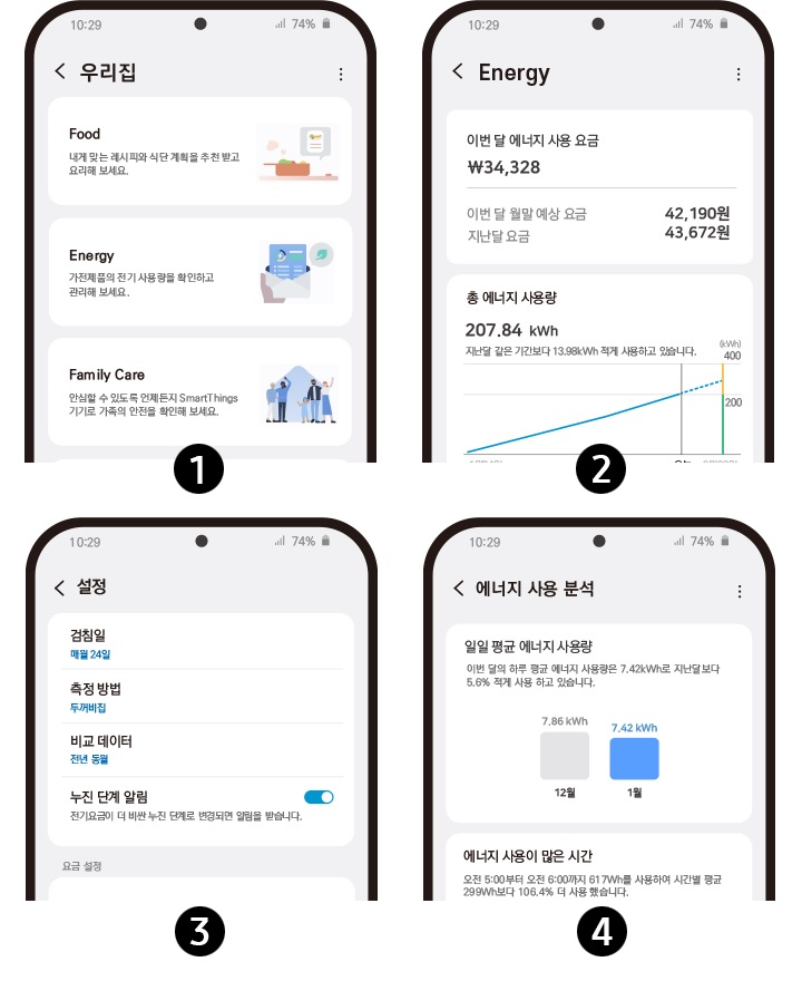 SmartThings 에너지 서비스에서 소비전력을 확인하고 전기요금을 예상 할 수 있습니다