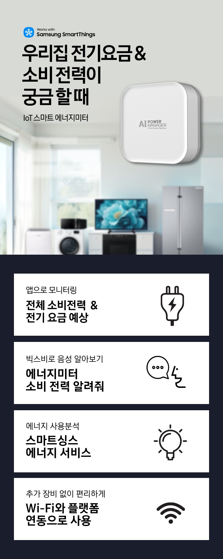 *파워매니저 앱(AIPM)에 연동 후 스마트싱스 앱에 연동하여 사용 할 수 있습니다.