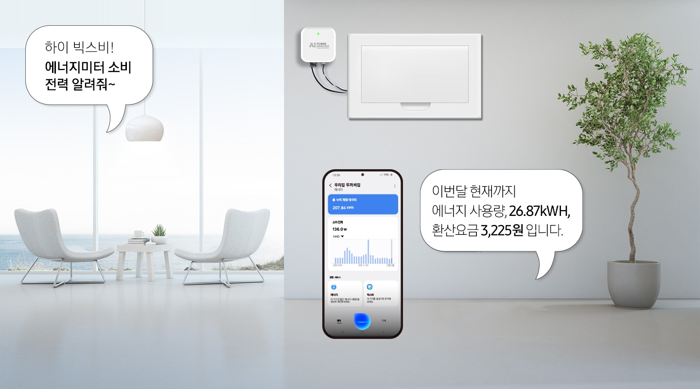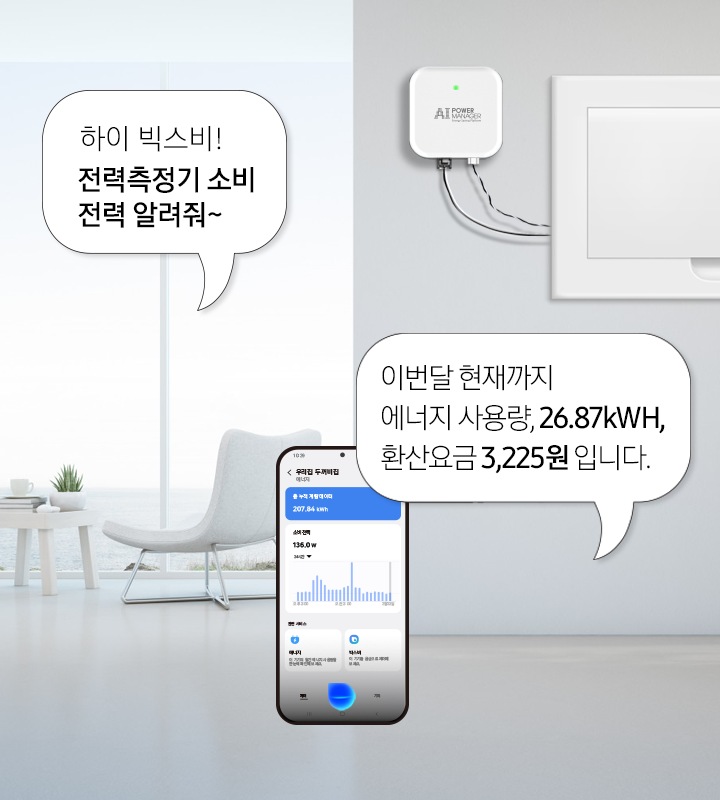 빅스비에게 이번달 소비전력과 환산 요금에 관한 정보를 얻을 수 있어요.