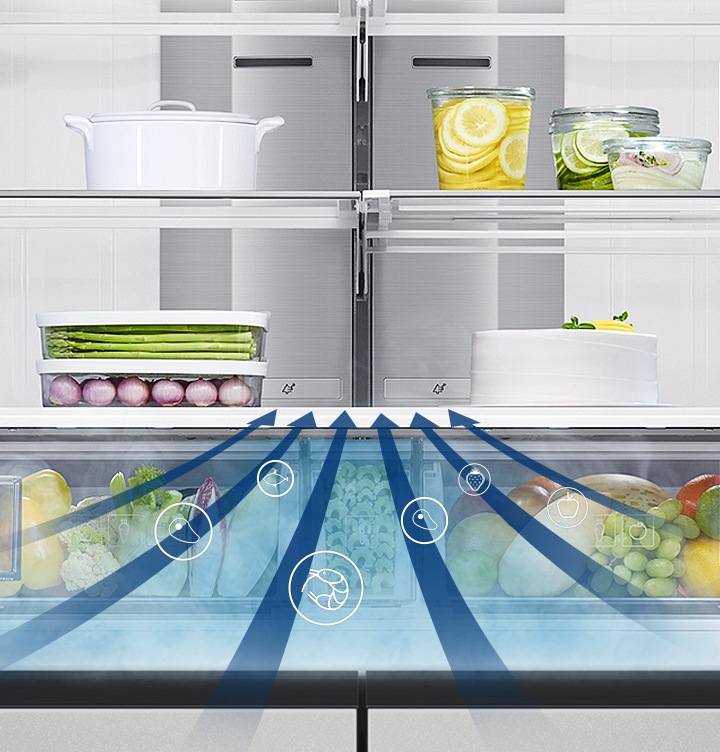냉장실, 냉동실, 맞춤보관실™ 각각에 냉각기가 있어 칸마다 최적의 온도와 습도로 식재료를 보관할 수 있습니다.