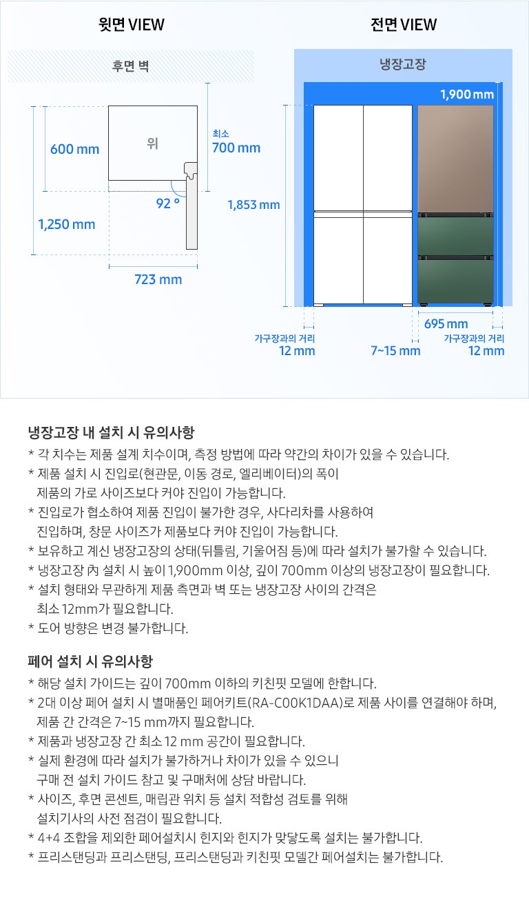 * 본 페어설치자재는 Bespoke 키친핏 제품에 한하여 설치 가능합니다.