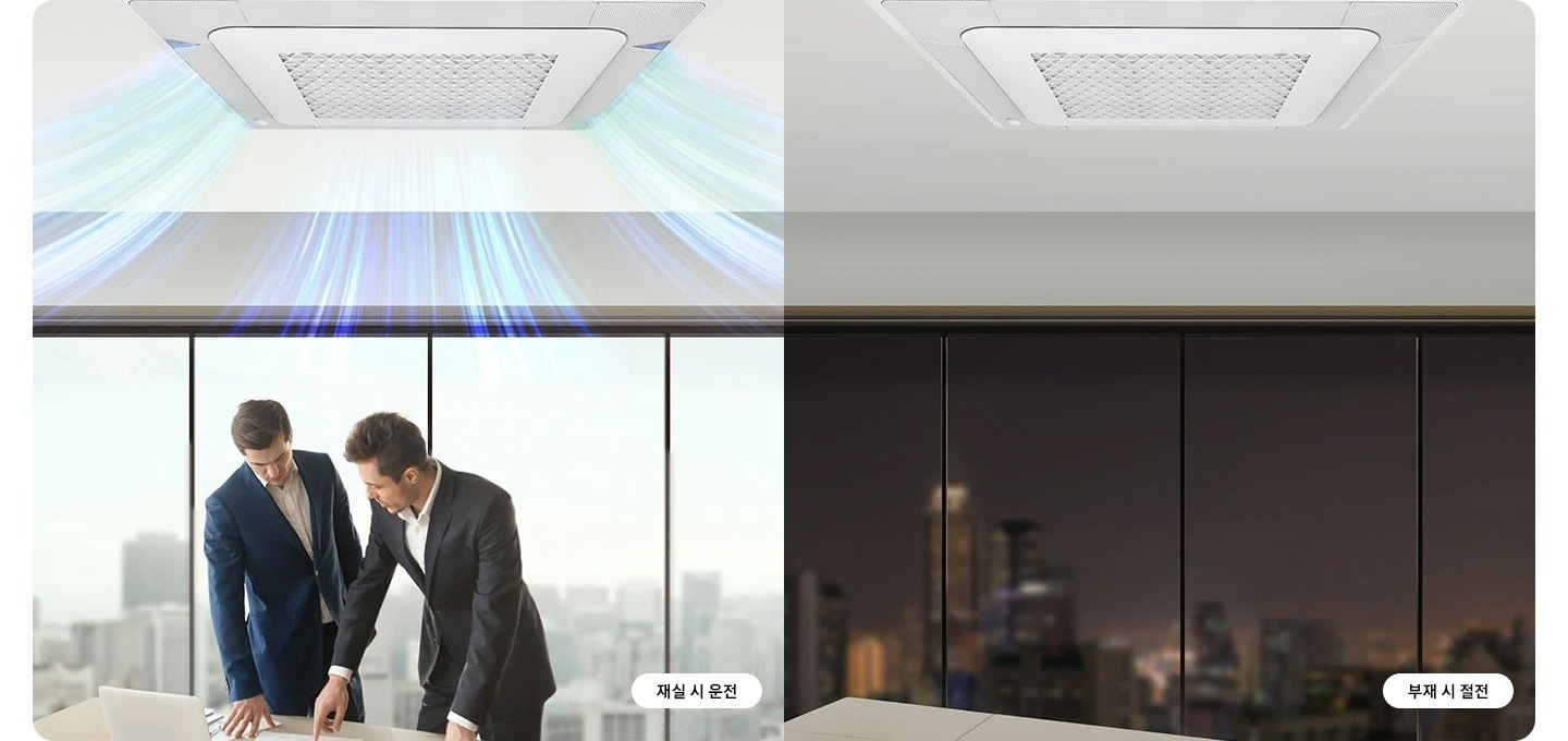 에어컨 전원을 종료하여 부재 시 최대 50 % 에너지 절감을 실현합니다.