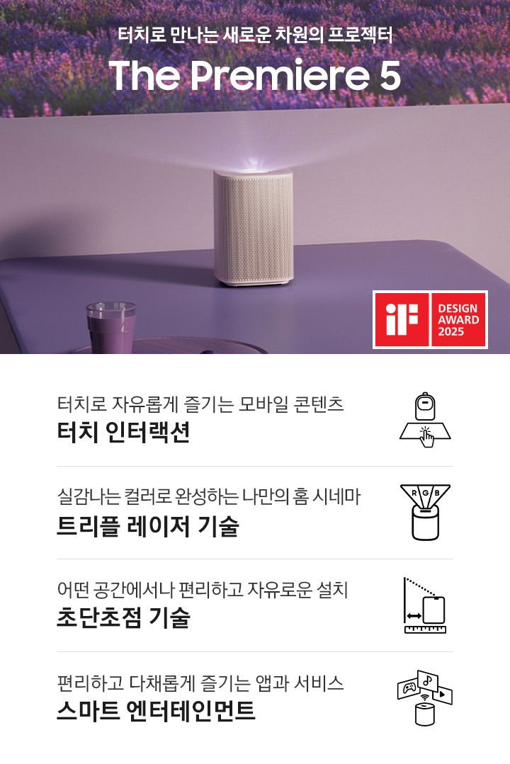 The Premiere 5의 비전 부스터 기술은 주변 빛의 밝기를 감지해 화면의 색상, 대비, 밝기를 자동으로 조정합니다.