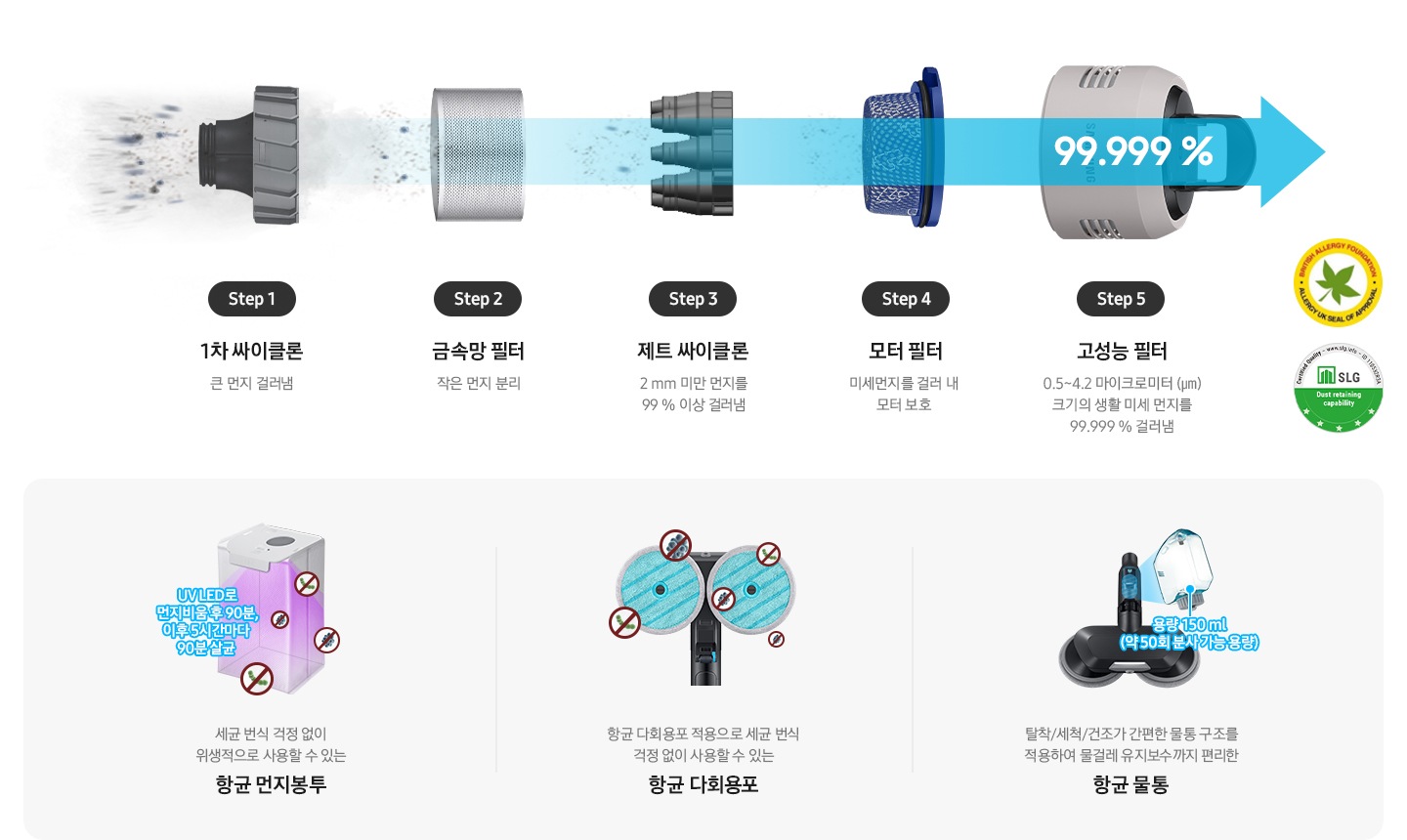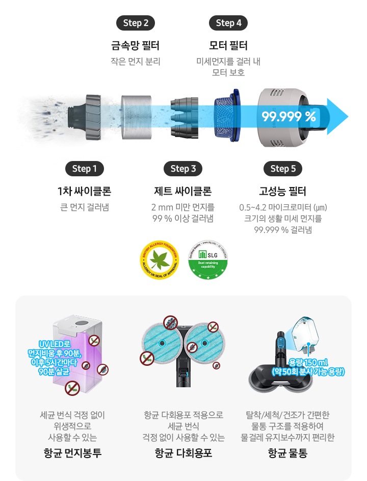 * 항균 먼지봉투 : 99.9% 항균 효과