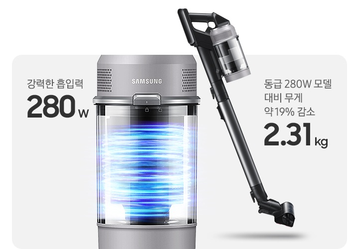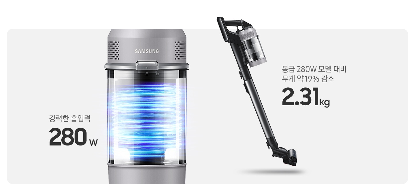 기존 Bespoke AI 제트 280W(VS28C97**) 대비 무게 감소
