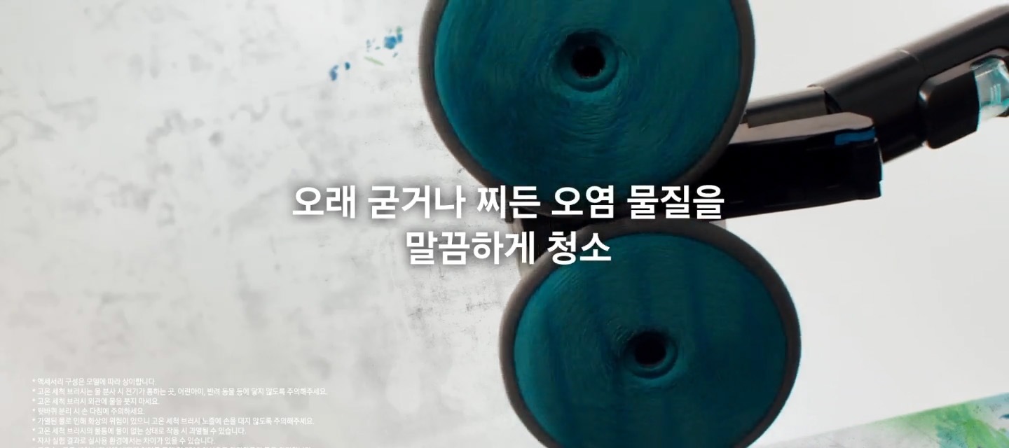 청소 중 브러시가 들리거나 벽면이나 구석에