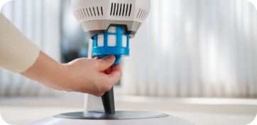버튼만 누르면 청소기 본체의 먼지통이 쉽게 분리되어 먼지 날림 걱정 없이 먼지를 비울 수 있습니다.
