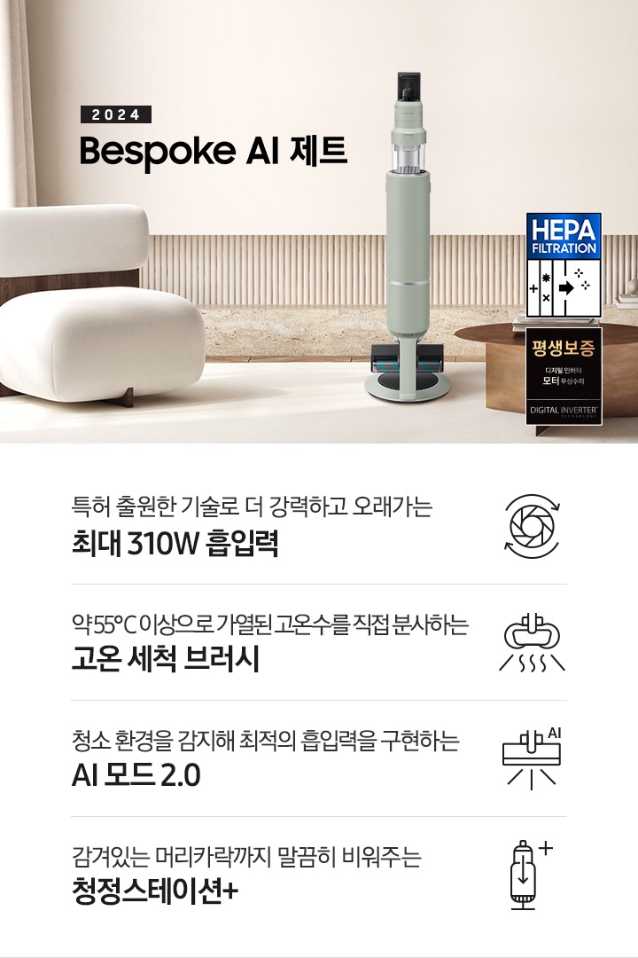 * Bespoke AI 스팀은 2024년 4월 한국표준협회에서 AI+인증을 받았습니다.