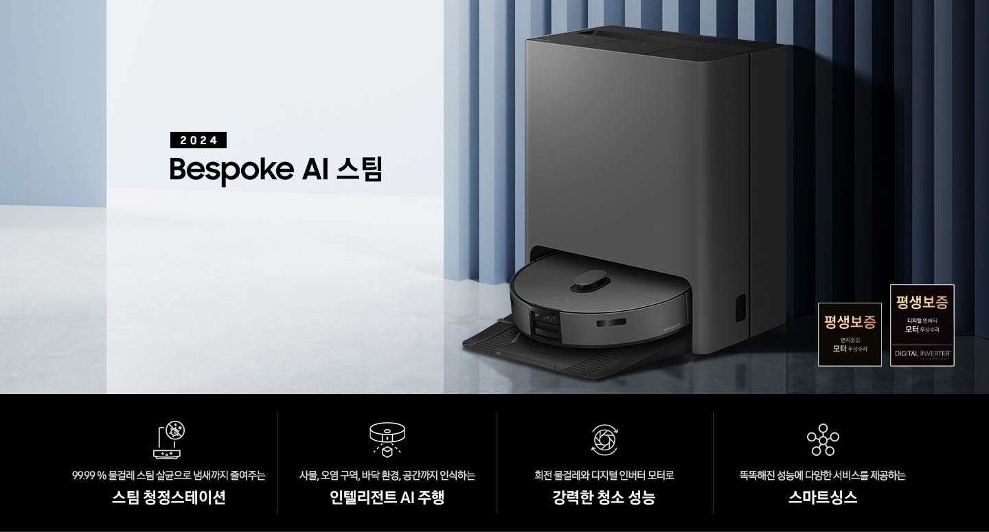 * 평생보증은 청소기는 디지털 인버터 모터, 청정스테이션은 먼지흡입 모터 한정입니다.