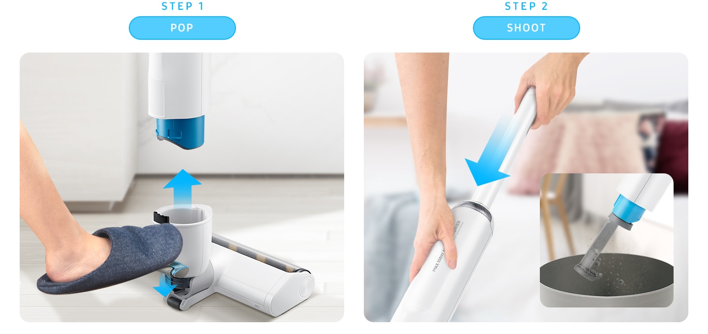 POP & SHOOT의 새로운 먼지통 비움 방식이 적용되어