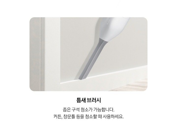 * 흡입력 수치는 국제표준(IEC 62885-2, 5.8절)에 따라 핸디형(브러시 미적용)/MAX 모드 기준 측정한 자사실험치로 실사용 환경에 따라 차이가 있을 수 있음.