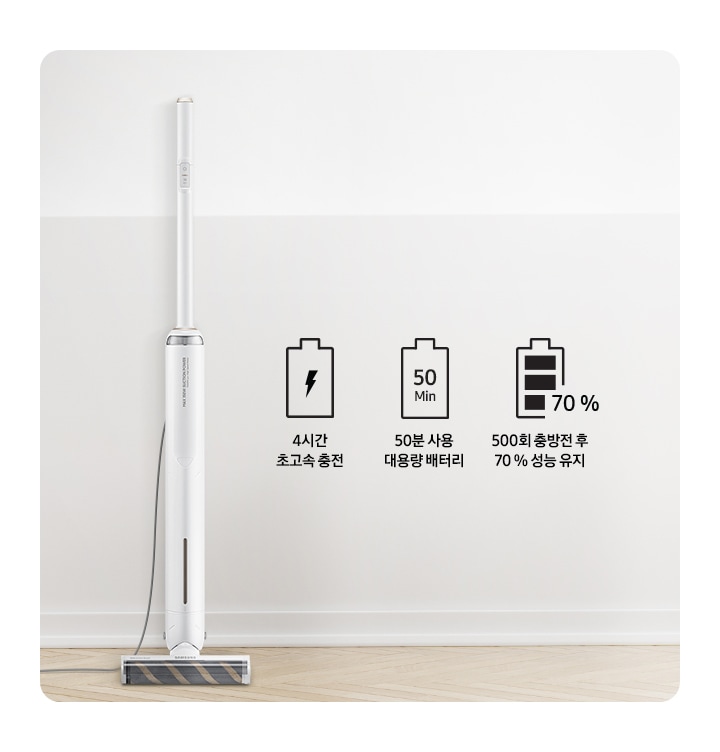 배터리 걱정 없는 여유로운 청소 시간을 즐기세요.