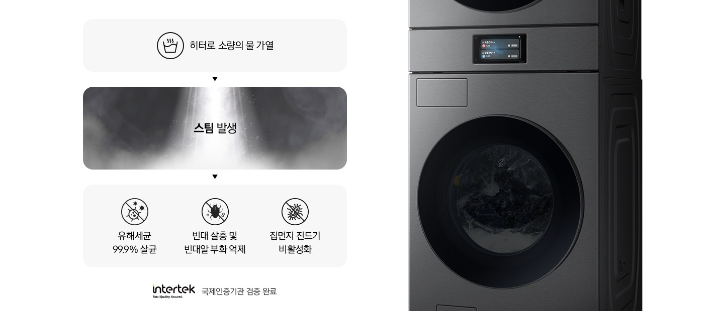 - 국제인증기관 Intertek의 검증을 받은 Intertek 시험 결과로 실사용 환경에 따라 다를 수 있습니다.