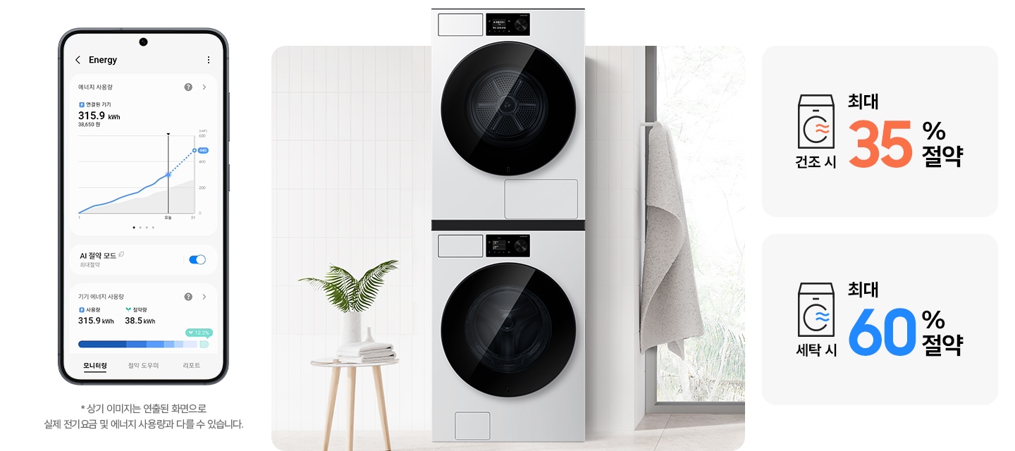 * 옷감 종류 분석은 1~3kg 세탁물 내에서 동작하며, 감지된 옷감 특성에 따라 건조 시간이 달라질 수 있습니다.