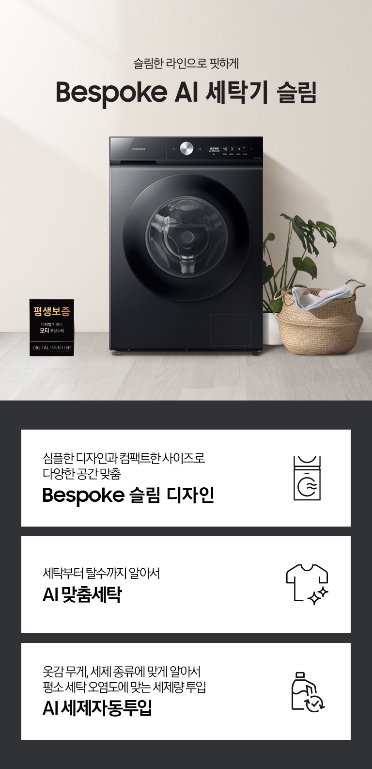 * 평생보증은 세탁기는 디지털 인버터 모터,