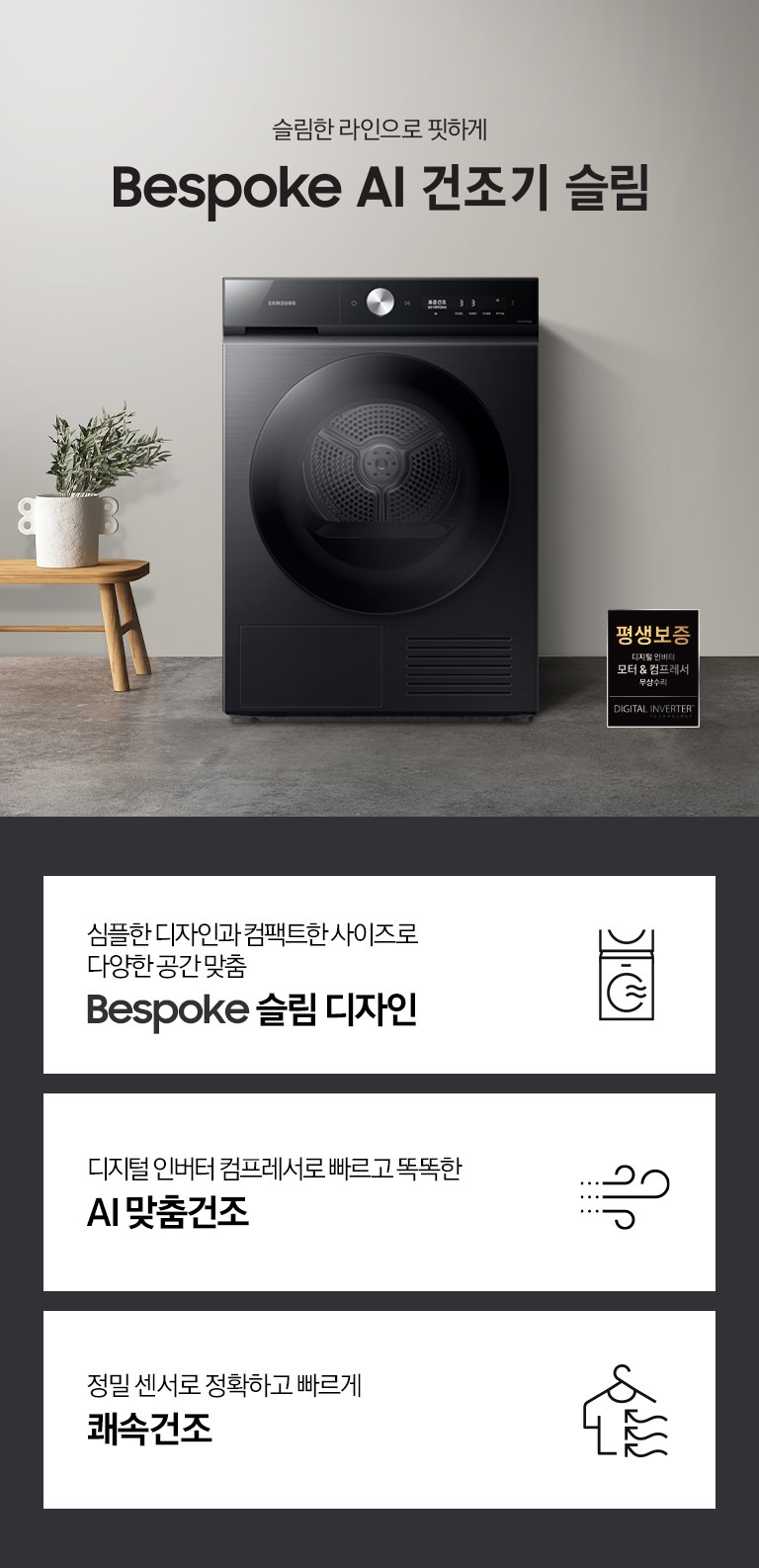 건조기는 디지털 인버터 모터 & 컴프레서 한정입니다.