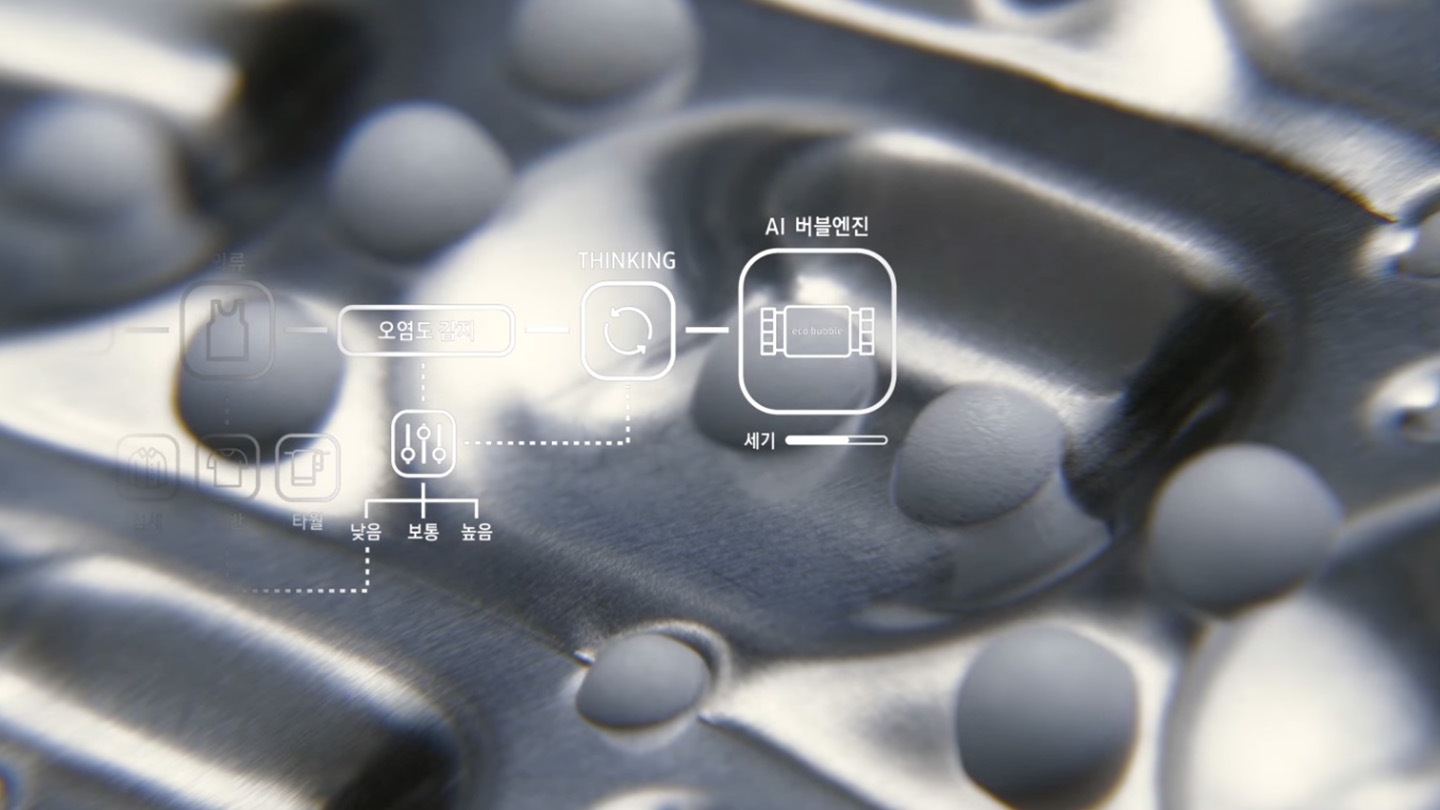 AI가 세탁물에 맞는 세제량, 워터샷 세기, 버블동작, 세탁/헹굼/탈수까지 조절하여 깨끗하고 섬세하게 세탁합니다.