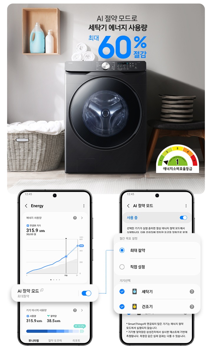 * AI 절약 모드는 SmartThings에서만 지원하며, SmartThings는 지원 환경 및 사용 방법에 일부 제한이 있습니다.