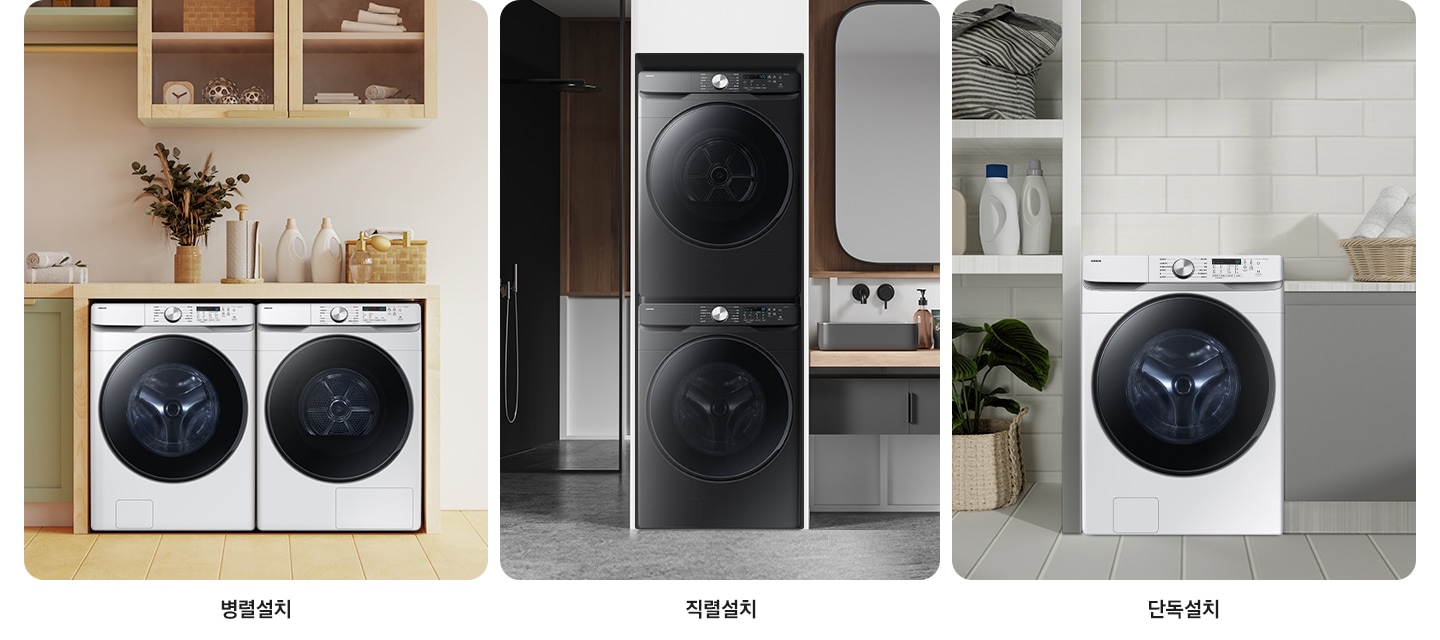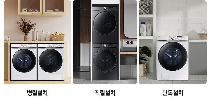 세탁기 단독으로 또는 건조기와 함께 원하는 대로 설치할 수 있습니다.