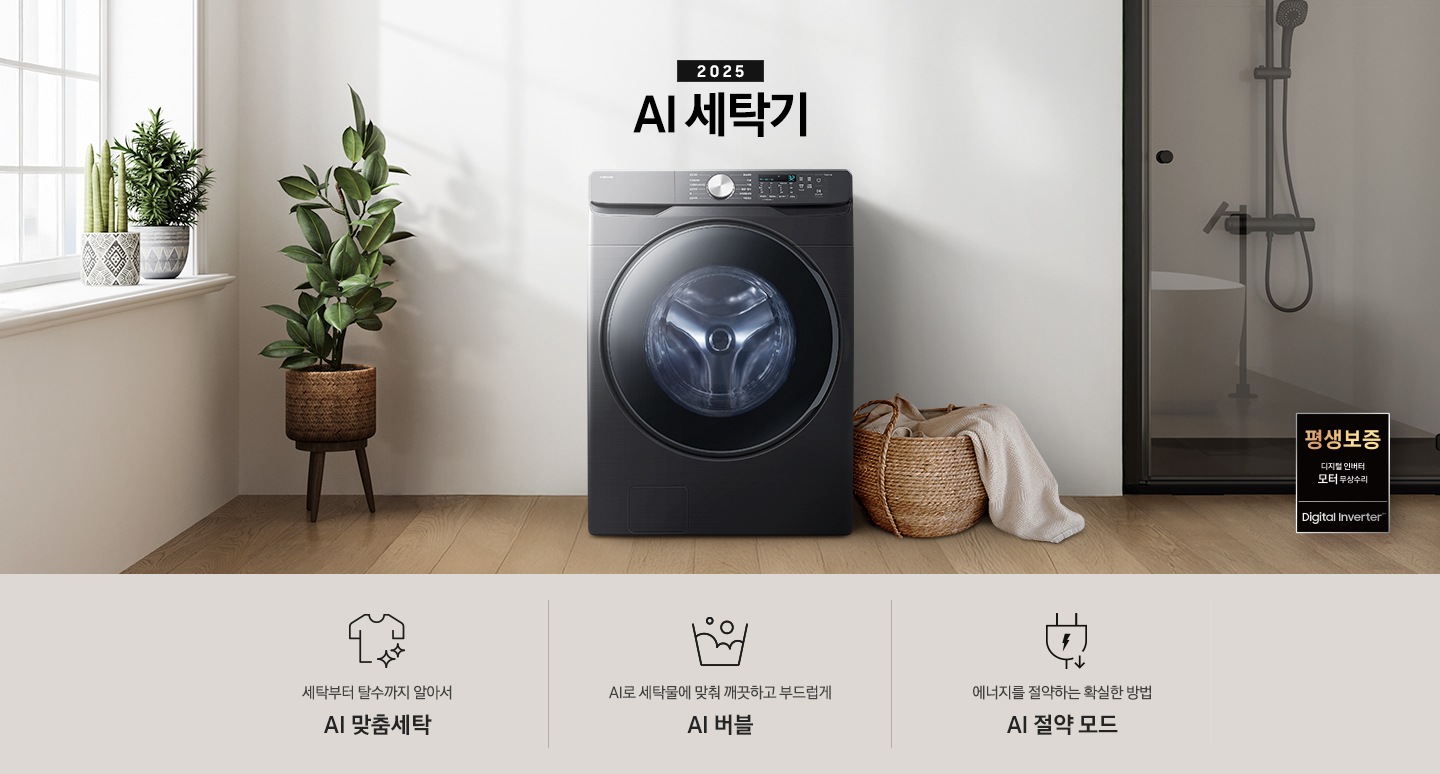 * 국내 최대 용량 25kg 세탁기 : 2025년 1월 1일 기준, 한국에너지공단에 신고된 가정용 세탁기 기준