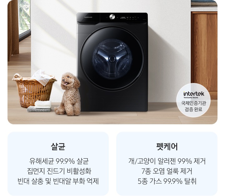 AI가 세탁물에 맞는 워터샷 세기, 버블동작, 세탁/헹굼/탈수까지 조절하여 깨끗하고 섬세하게 세탁합니다.