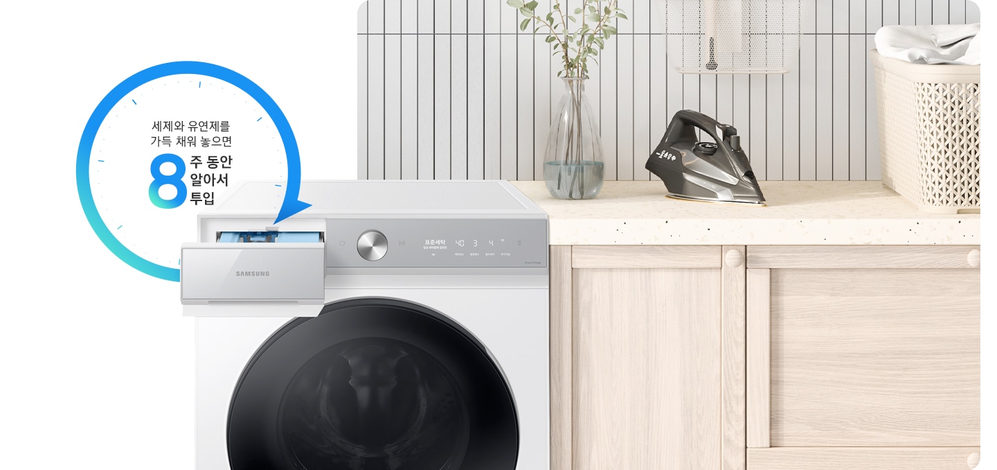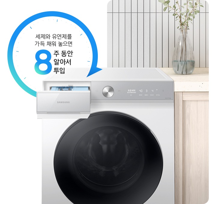 세제와 유연제를 가득 채워 놓으면 8주 동안