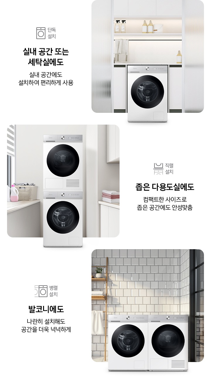 - 세탁기와 건조기의 직렬설치를 희망하는 경우 해당 제품과 호환이 가능한 전용 상단 설치 키트(판매처 문의)
