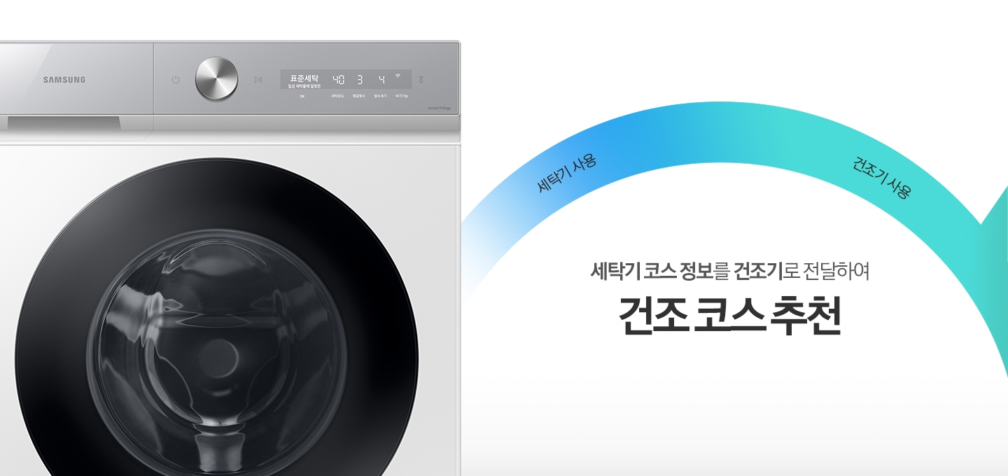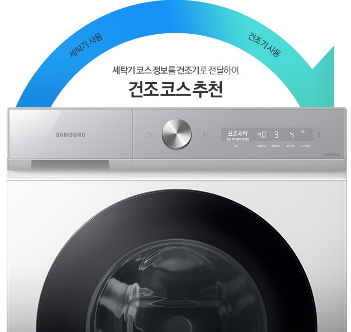 * 삼성 SmartThings 앱 내 건조기 탭에서 ‘AI 코스연동' 기능 사용을 설정해야 하며,