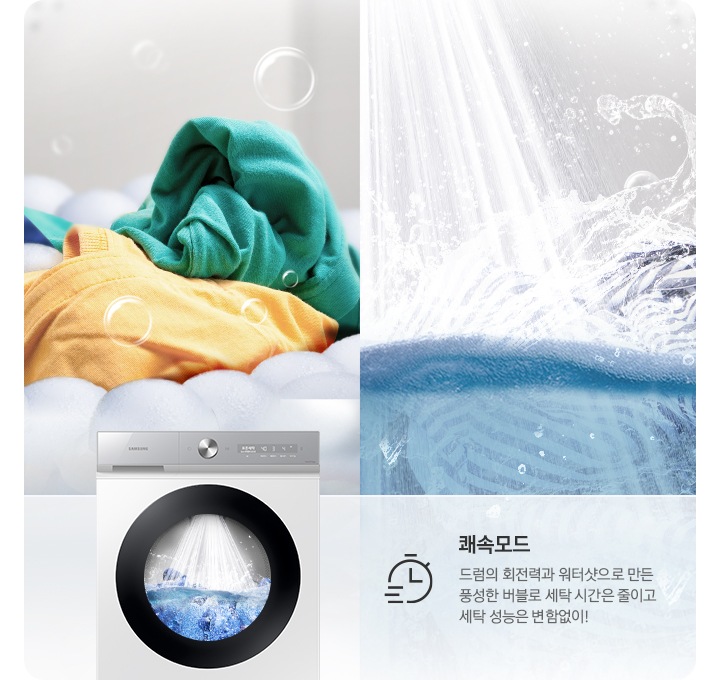 세제를 충분히 녹여 만든 버블이 옷감 사이사이 빠르고 깊숙하게 스며들어 빈틈없이 세탁합니다.